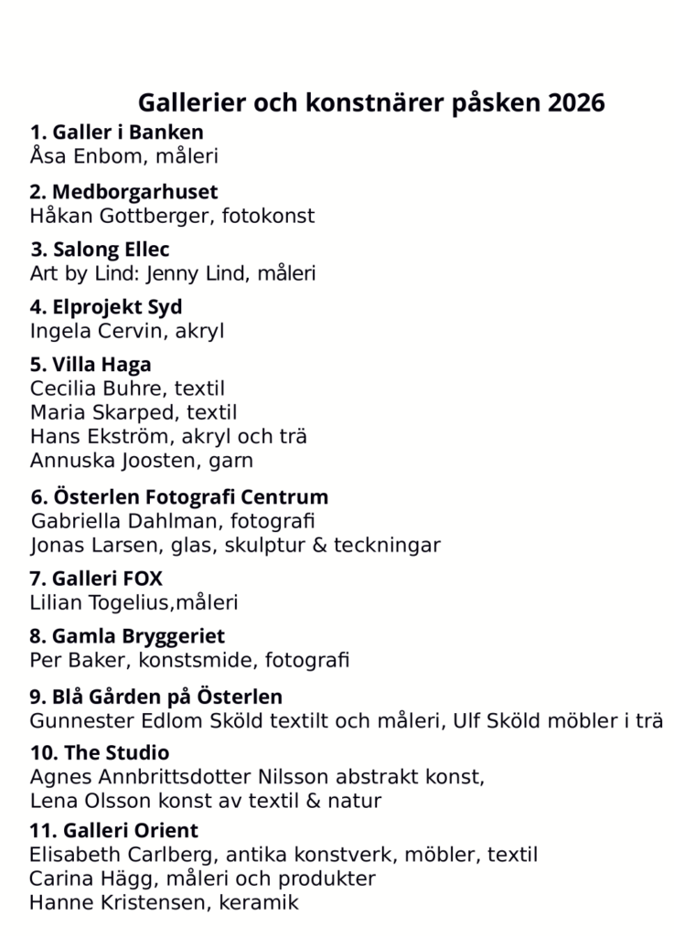 Galleri Gamla Bryggeriet 22år i Smedstorp och på Österlen.