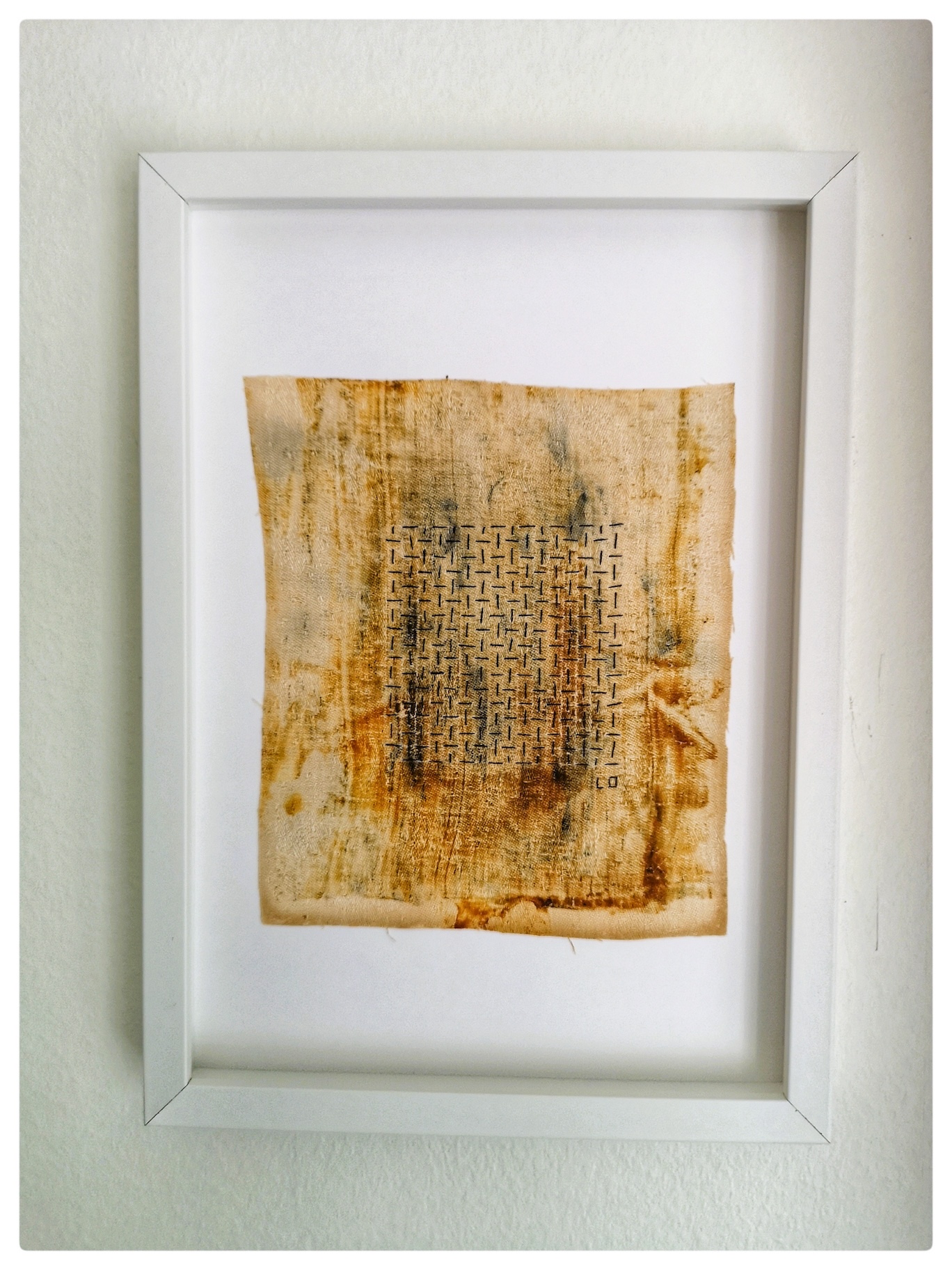 Främst arbetar jag textilt med broderi men också med andra tekniker och jag använder mig mestadels av återbrukat material men inte alltid. Jag hittar också material i naturen som jag använder mig av ibland och kan då låta textil och natur samverka med varandra.